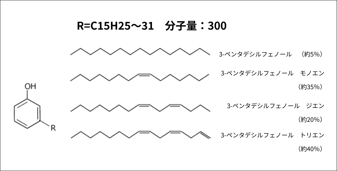- 側鎖のアルケニル基が長鎖(C15)であるため柔軟性を与える