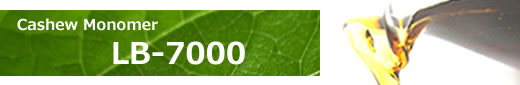 LB-7000は、CNSL(カシュー殻液)を蒸留精製して得られる単量体(モノマー)です。非食部の植物原料を出発物質としており、製品の植物成分率上昇が見込めます。フェノールと同等の反応性を有する、フェノール誘導体です。